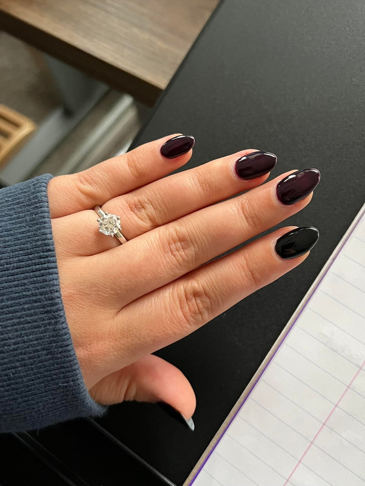 „Przygotowuję się do ślubu w przyszłym miesiącu i testuję kolory. Wybrałam ciemnofioletowy, ale prawie nie widzę różnicy między nim a czarnym”.