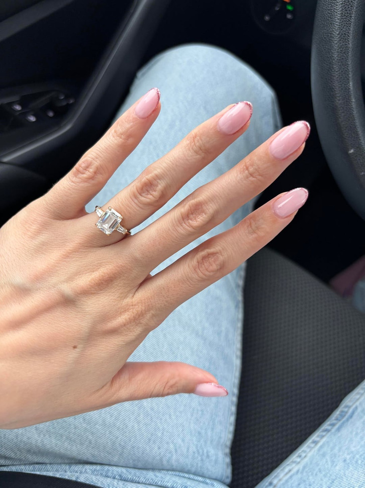 „Mikro-french z różowym brokatem”