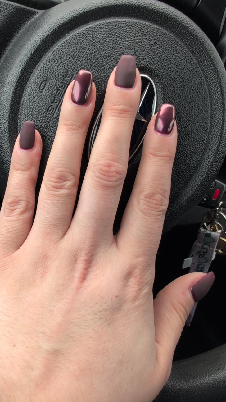 Dla tych, którzy poszukują głębokiego, wielowarstwowego i stylowego designu, który nie wymaga jaskrawych kolorów ani skomplikowanych wzorów, odpowiednim rozwiązaniem będzie gra fakturami. Eksperci zalecają zabawę matowym i błyszczącym wykończeniem, aby urozmaicić nawet najprostszy klasyczny manicure. Matowe wykończenie w połączeniu z błyszczącym to wyszukany zabieg, który nada manicure drogi wygląd. Do takiego manicure eksperci polecają przyjrzenie się ciemnym i nasyconym kolorom, na przykład bordowemu, ciemnoniebieskiemu, szmaragdowemu czy nawet czarnemu. Po prostu spójrzcie na to piękno!