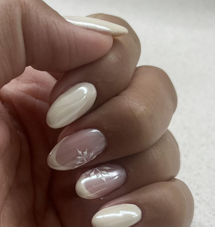 Zima to pora świąt i imprez. Jeśli chcesz dodać do swojego wyglądu odrobinę zimowej magii i przytulności, ale jednocześnie zachować neutralność, spróbuj zrobić francuski manicure ze śnieżynkami. Wygląda to niesamowicie delikatnie. A nude lub mleczno-różowa baza to gwarancja elegancji i luksusowego wyglądu. Taki uroczy design z pewnością poprawi nastrój i będzie idealnym uzupełnieniem zarówno codziennego stroju, jak i kreacji na wyjście. Najważniejsze to nie przesadzać z ilością śnieżynek. Możesz wybrać paznokieć z akcentem lub nanieść malutkie śnieżynki na krawędź paznokcia. Aby nadać jeszcze bardziej magiczny wygląd, możesz dodać połysk lub brokat.