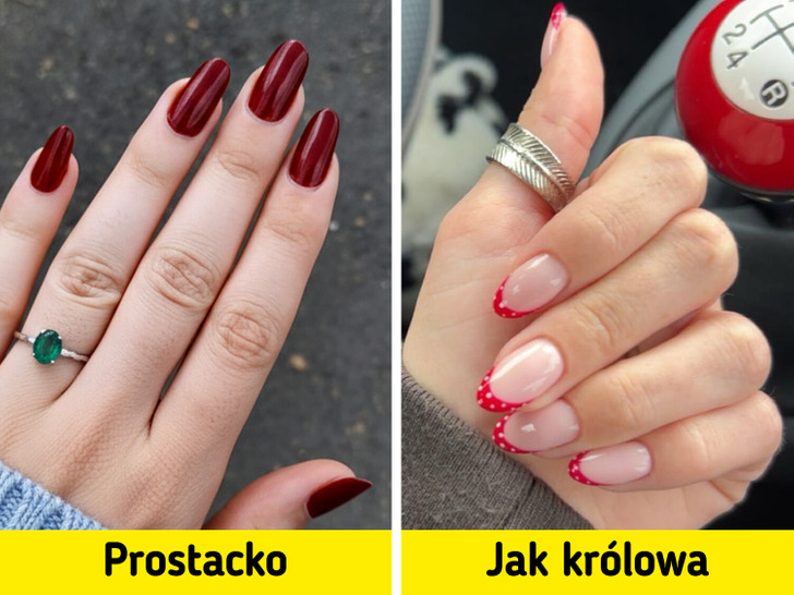 Jak podpowiadają specjaliści modowego czasopisma Instyle, grochy to nieoficjalny wzór roku 2025. Ponadto, grochy są klasycznym wzorem, który kojarzy się z kobiecością, francuskim szykiem i modą w stylu vintage. W połączeniu z frenchem wyglądają nowocześnie i, co najważniejsze, zawsze są na czasie. Spróbuj nanieść groszki wyłącznie na końcówkę paznokcia. Eksperci proponują rozważyć delikatny niebieski w połączeniu z brązowym, ale można również trzymać się bardziej standardowych połączeń. Na przykład, biel z czernią lub biel z czerwienią. Spójrz tylko, jak niezwykle elegancko wygląda czerwony french z groszkami. Jest to znacznie świeższe i bardziej oryginalne niż zwykły jaskrawo-czerwony manicure, zwłaszcza na długich paznokciach, które wielu ekspertów i użytkowników uważa za niegustowne, a czasem nawet wulgarne.