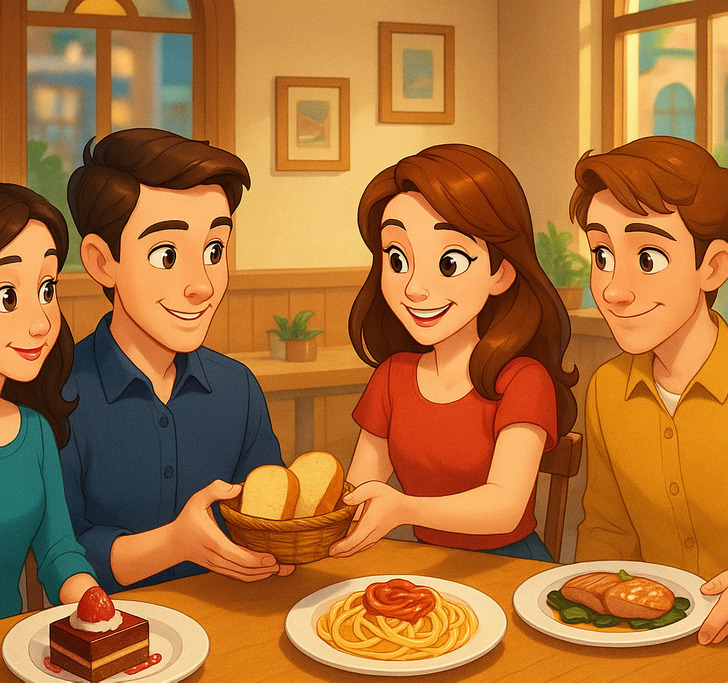 Istnieje również zasada dotycząca podawania chleba. Jeśli chleb nie jest pokrojony, odetnij z niego kilka kawałków i najpierw zaproponuj osobie po lewej stronie, następnie podaj koszyk w prawo. Podczas krojenia chleba nie należy go dotykać palcami, utrzymuj bochenek za pomocą materiałowej serwetki znajdującej się w koszyku na chleb.