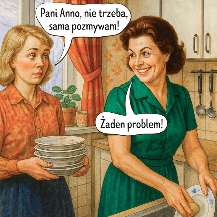 Po zakończeniu święta goście zawsze pomagali gospodyni sprzątać ze stołu i zmywać naczynia. Niektóre panie grzecznie odmawiały, ale wspólne krzątanie się w kuchni było częścią rytuału świątecznego. Mężczyźni zazwyczaj nie brali w tym udziału i zaszywali się gdzieś w pobliżu gramofonu lub telewizora. To właśnie podczas zmywania można było spokojnie omówić najnowsze wiadomości z życia osobistego przyjaciółek i krewnych, osiągnięcia dzieci i historie z pracy.