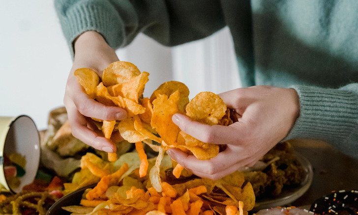 Bratanica (2,5-letnia) znajduje w salonie paczkę chipsów. Zaczyna je jeść. Mama znajduje ją, odkłada paczkę na stole w kuchni i odchodzi. Bratanica siedzi teraz z tatą w salonie.