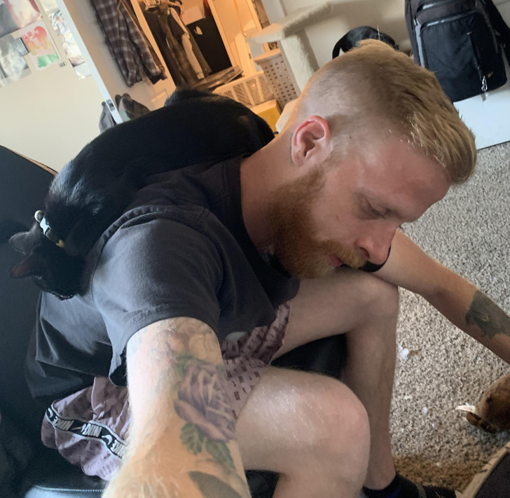 8. „Pochyliłem się, żeby podrapać psa po brzuchu. Ruth odebrała to jako zaproszenie do drzemki na moich plecach. Strasznie bolą mnie plecy”.