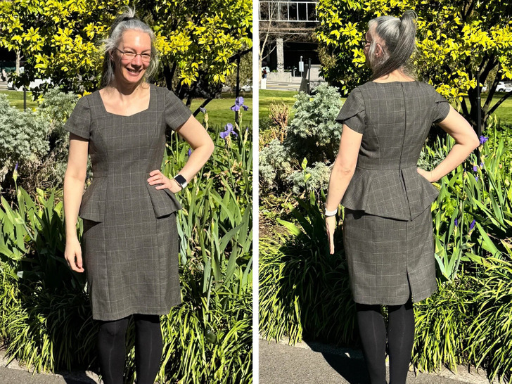 „Pracuję w dużej korporacji i postanowiłam uszyć sobie idealnie dopasowany strój biurowy. Wszystko wymyśliłam i wykonałam sama”.