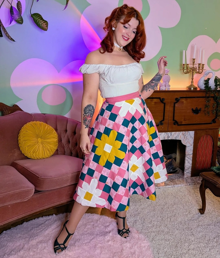 „Od dawna fascynował mnie patchwork, ale uszycie całego koca to już byłoby dla mnie za dużo — zwykle szyję ubrania. Dlatego powstała taka właśnie spódnica z łatek”.