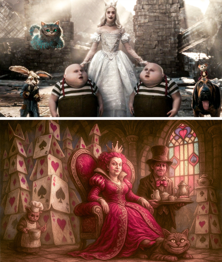 W świecie, gdzie zapanowała Czerwona Królowa, nad wszystkimi góruje jej potworny zamek z kart, drżący przy każdym podmuchu wiatru.