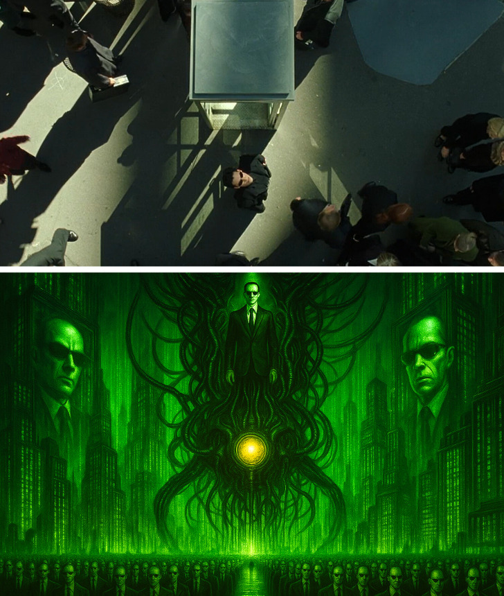 Świat pod władzą Agenta Smitha zamienił się w jednolity koszmar: w centrum gigantycznej maszyny połączył się z przewodami, kontrolując każdy ruch miasta.