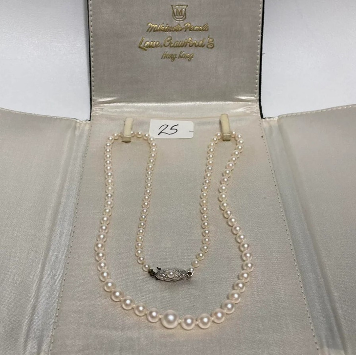 12. „Znalezisko z wyprzedaży spadkowej. Perły Mikimoto vintage za 25 dolarów”.