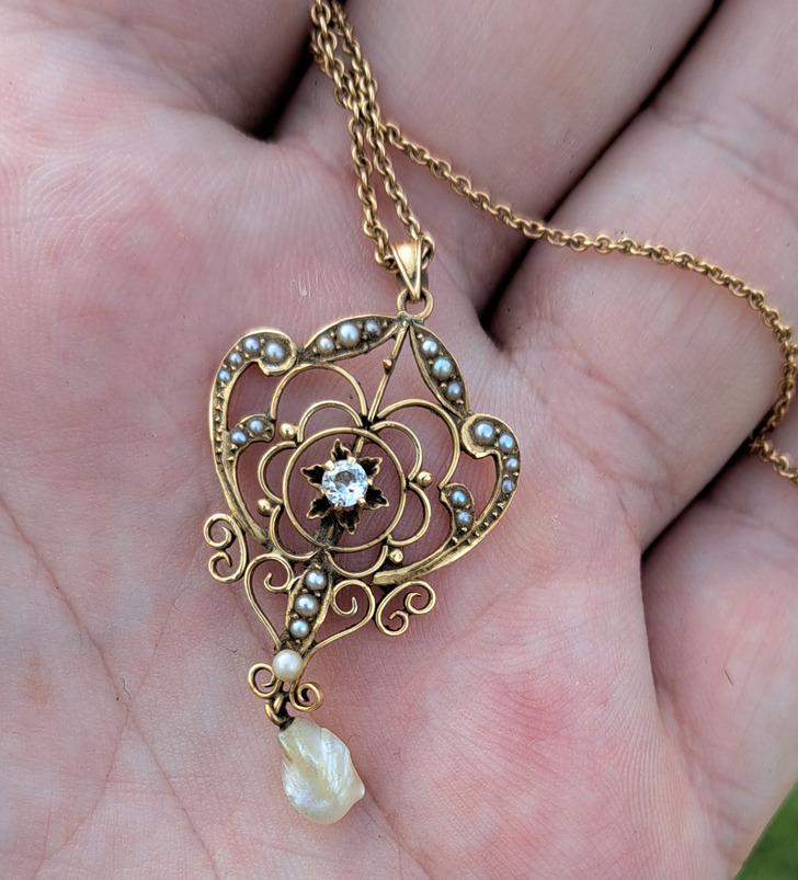 2. „50 centów na wyprzedaży garażowej! Zabrałam to do jubilera, okazało się, że to 14-karatowe złoto, diament i szafir z perłą tahitańską”.