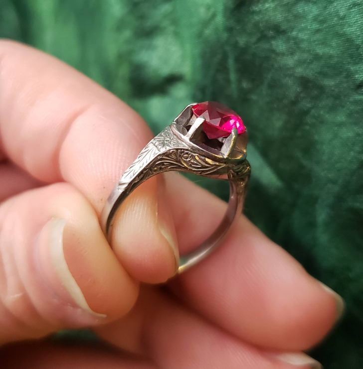 6. „Właśnie znalazłam ten piękny, nieoznaczony pierścionek z rubinem, 10-karatowe złoto”.