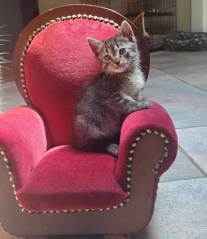 13. „Znalazłam w sklepie z używanymi rzeczami idealny tron dla kociaka”.