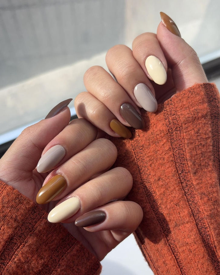 Czekoladowy odcień brązu był na szczycie popularności jesienią, jednak nadal jest aktualny teraz. Aby manicure wyglądał elegancko, lepiej wybierać cieplejsze tony. Magazyn Allure nazwał taki brąz jednym z głównych kolorów zimowej palety.