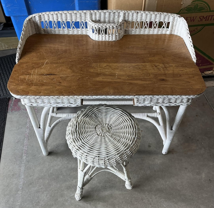 „Właśnie za to uwielbiam swoją pracę. Ten wiklinowy stół jest przepiękny”.