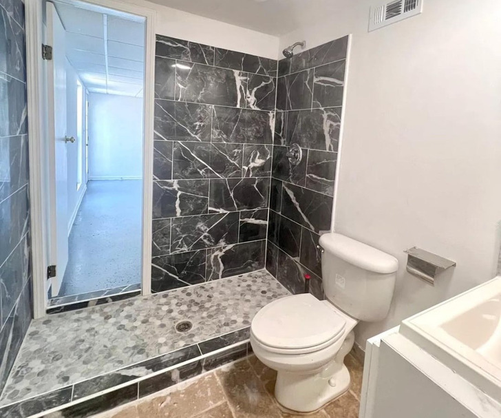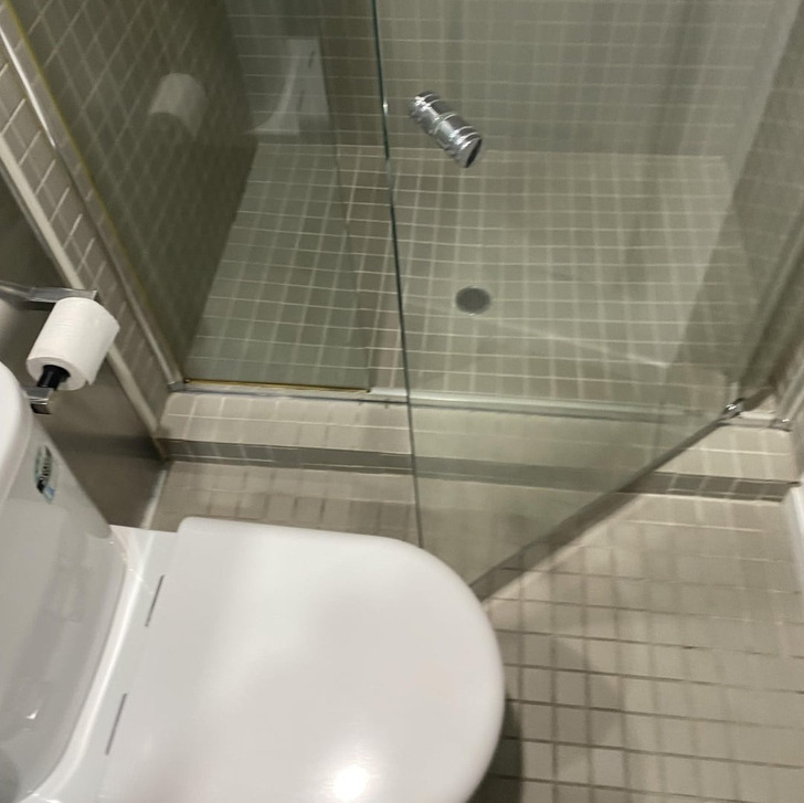 „Źle wyremontowana łazienka z dziwnym położeniem prysznica”.