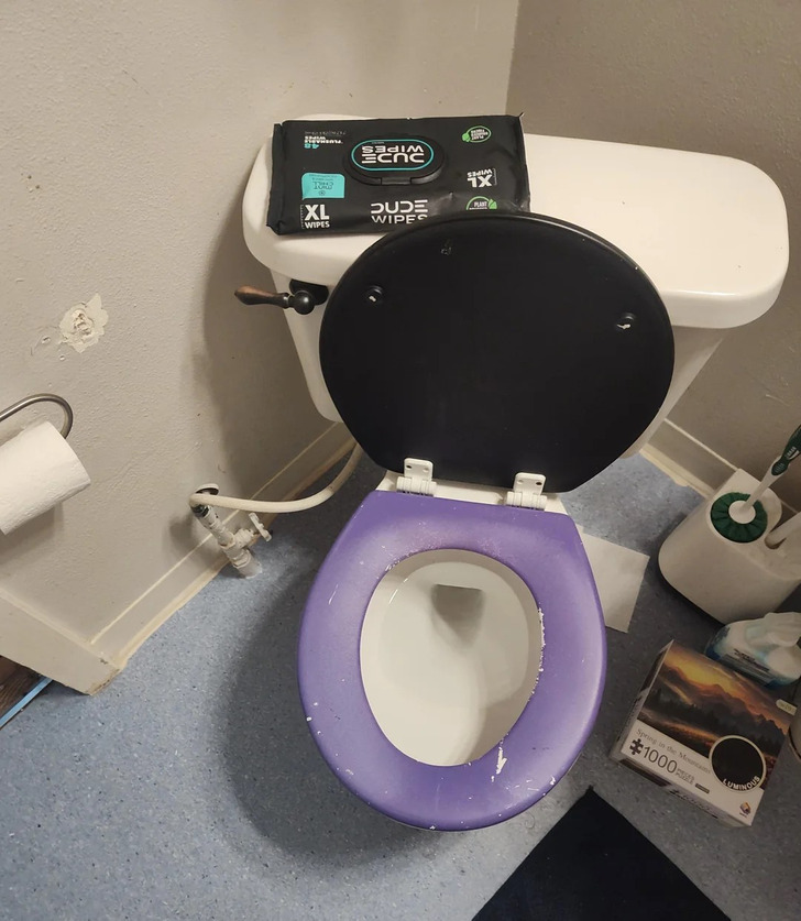„Sąsiad postanowił pomalować deskę sedesową. Powiedział, że chciał jej nadać połysku. Wielki błąd!”.