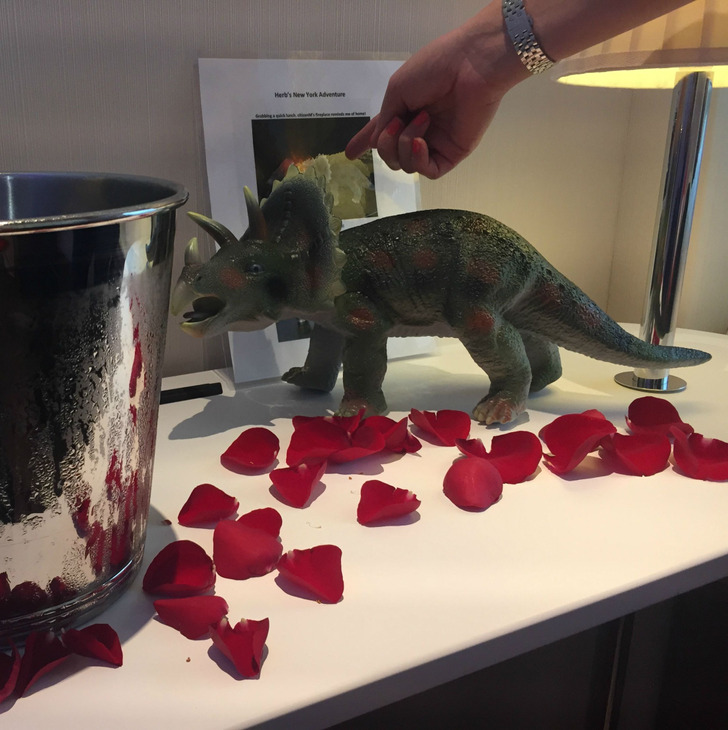 „Napisałem, że chcę róże i plastikowego dinozaura. Też o tym zapomniałem i aż osłupiałem, kiedy wszedłem do pokoju”.