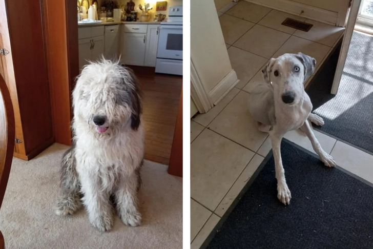 6. „Owczarek przed i po strzyżeniu”
