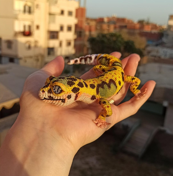 „Zrobiłam na szydełku gekona tygrysiego”.