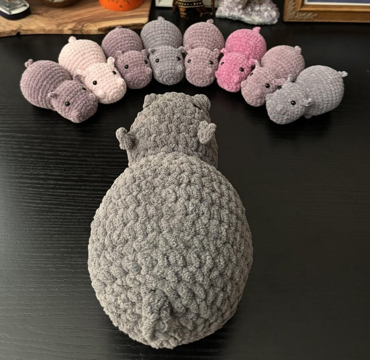 „Zrobiłam kilka hipopotamów w ramach prezentów dla gości zaproszonych na urodziny mojej córki. Roześmiałam się, gdy zobaczyłam, jak mój mąż je ustawił”.