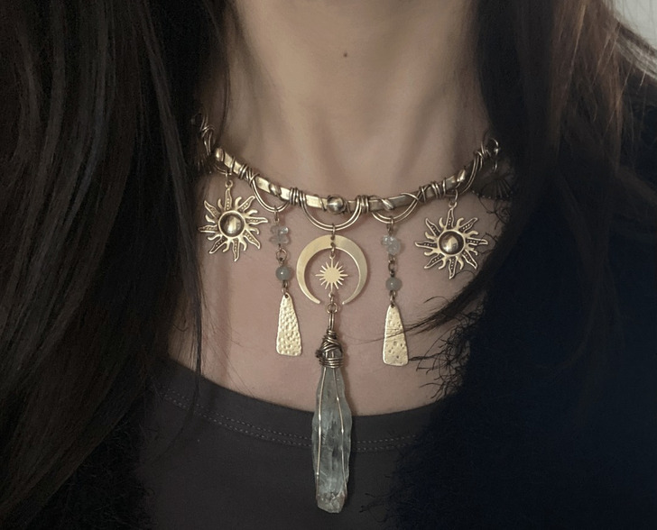 „Stworzyłam naszyjnik-choker z mosiądzu i kryształów”.