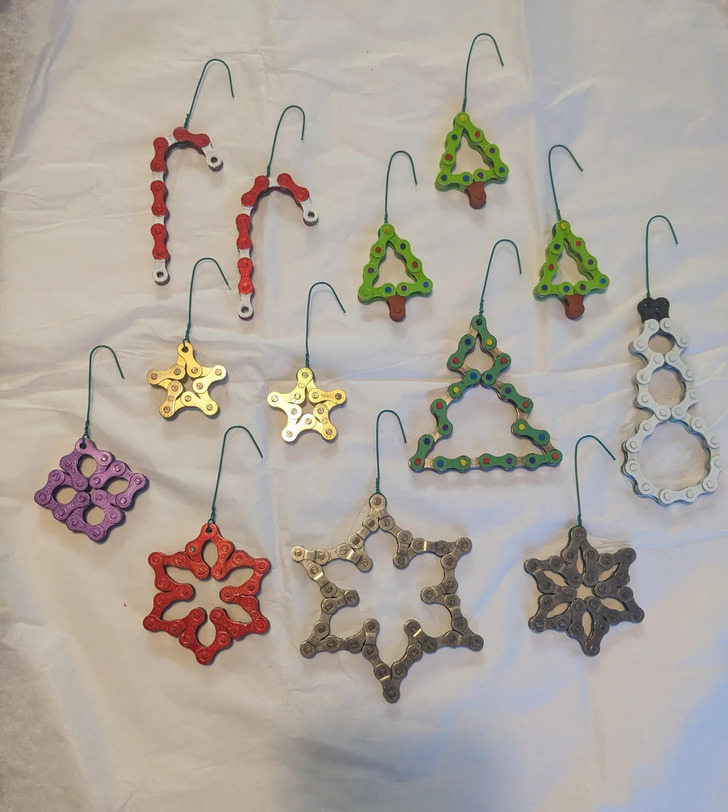 11. „Zrobiłem kilka ozdób ze starego łańcucha rowerowego”.