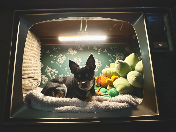3. „Ten stary, zabytkowy telewizor został przerobiony na przytulne psie łóżko!”