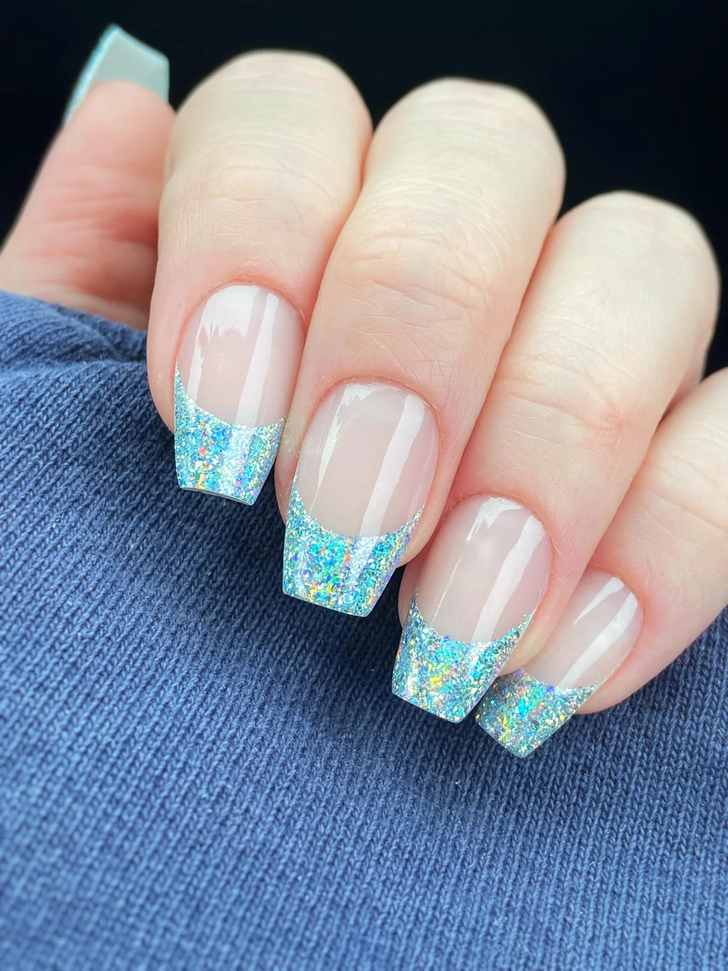 Oszronione paznokcie to klasyczna zimowa stylizacja, która lśni jak świeżo opadły śnieg i kojarzy się z rześkim chłodem zimowego poranka. Można ją uzyskać dzięki lśniącemu pyłkowi lub płatkom, które przypominają szron i lód.