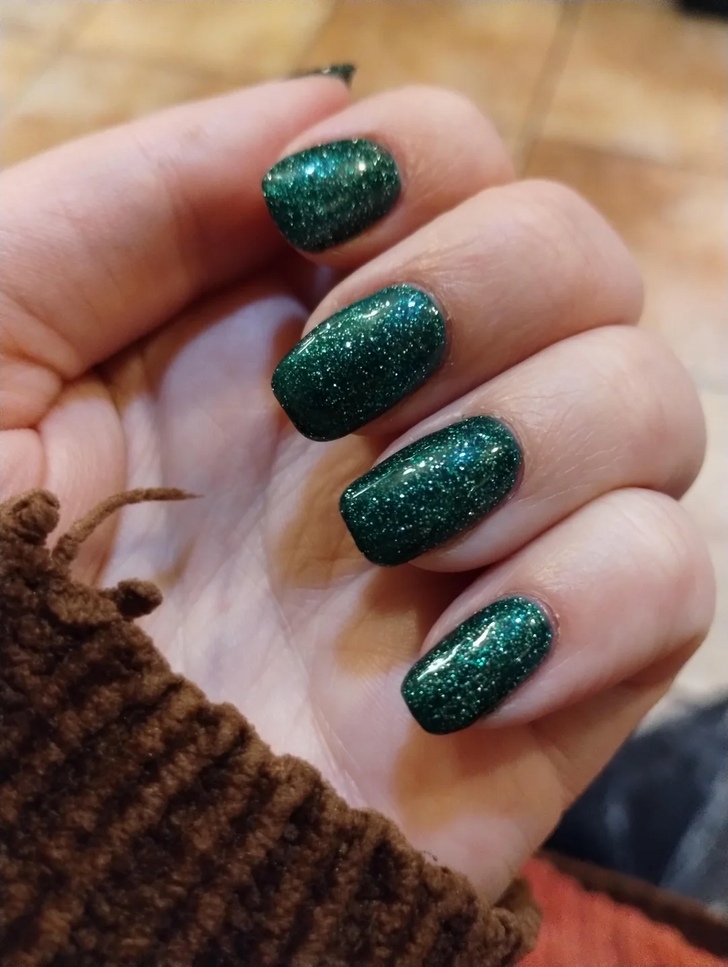 Ciemnozielone paznokcie to ponadczasowy trend w świecie manicure, który warto wypróbować. Ten elegancki, uniwersalny odcień pasuje do różnych stylów — pasują do stylizacji na Halloween, a także wpisują się w estetykę bożonarodzeniową.