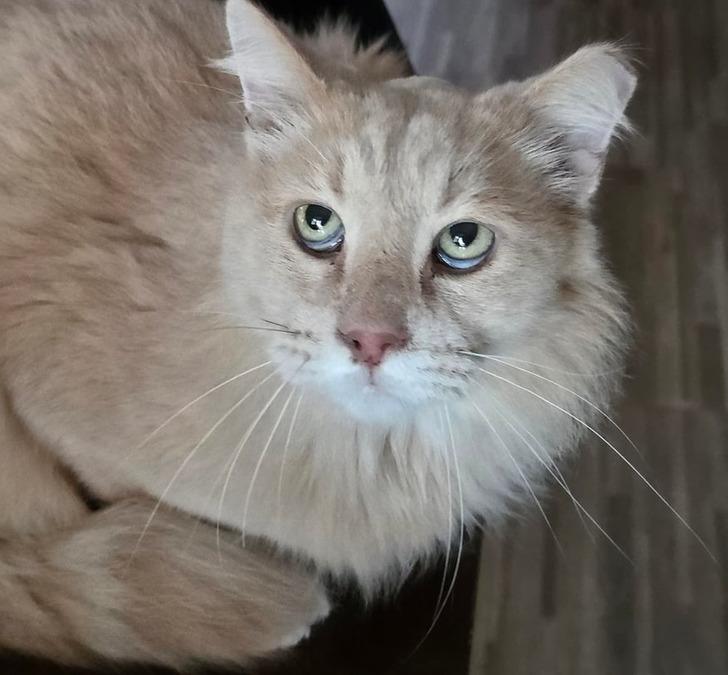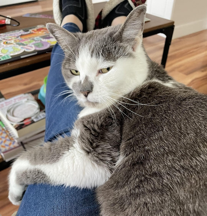 „Przypadkowo go obudziłem, gdy drzemał na moich kolanach. Oto jak na mnie spojrzał”.