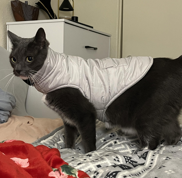„Zobaczcie tylko, co kupiłam mojemu kotu na zimę”.
