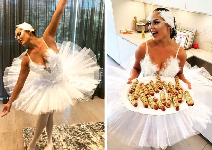 3. Chrissy Teigen szykuje swoim dzieciom przekąski w stroju baleriny z baletu Jezioro łabędzie