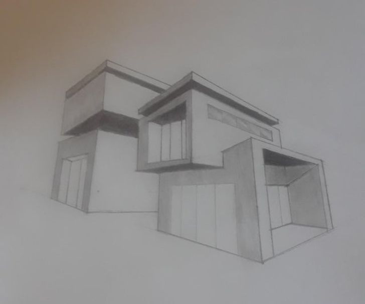 „Mam 13 lat i chcę zostać w przyszłości architektem. To mój pierwszy rysunek nowoczesnego domu”