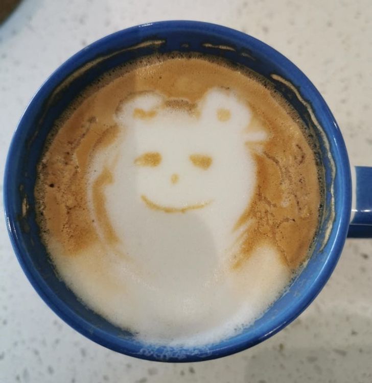 „Tęsknię za moim ulubionym baristą, więc postanowiłem odtworzyć misia z piany, którego zawsze mi robił”