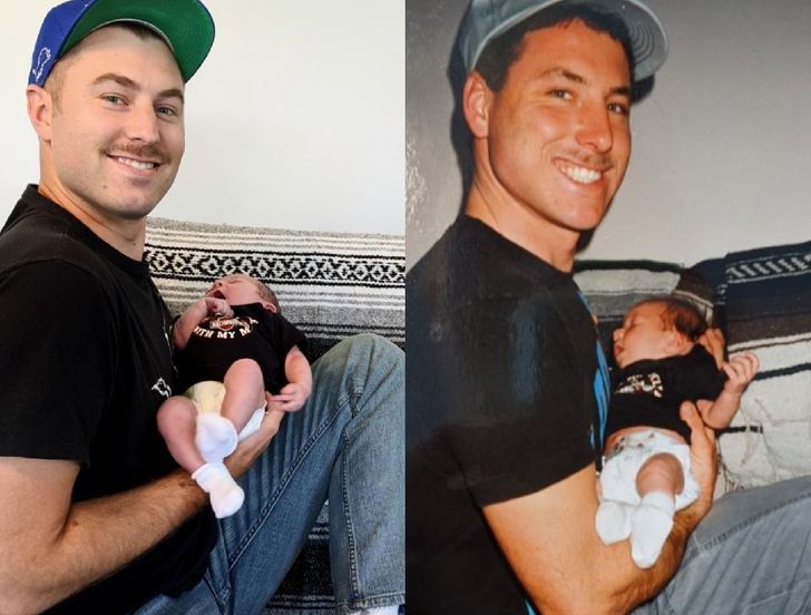 5. „Ja z moim nowo narodzonym synkiem i mój ojciec, który trzyma mnie po urodzeniu”