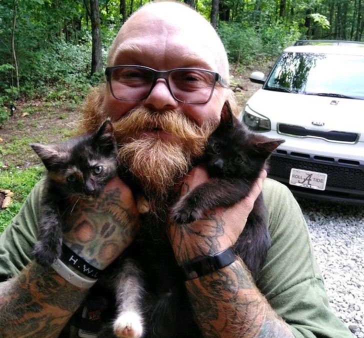 4. „Kiedy byłem mały, mój tata nienawidził kotów. A tak wygląda teraz ze swoimi dwoma kociakami — Thelmą i Louise”