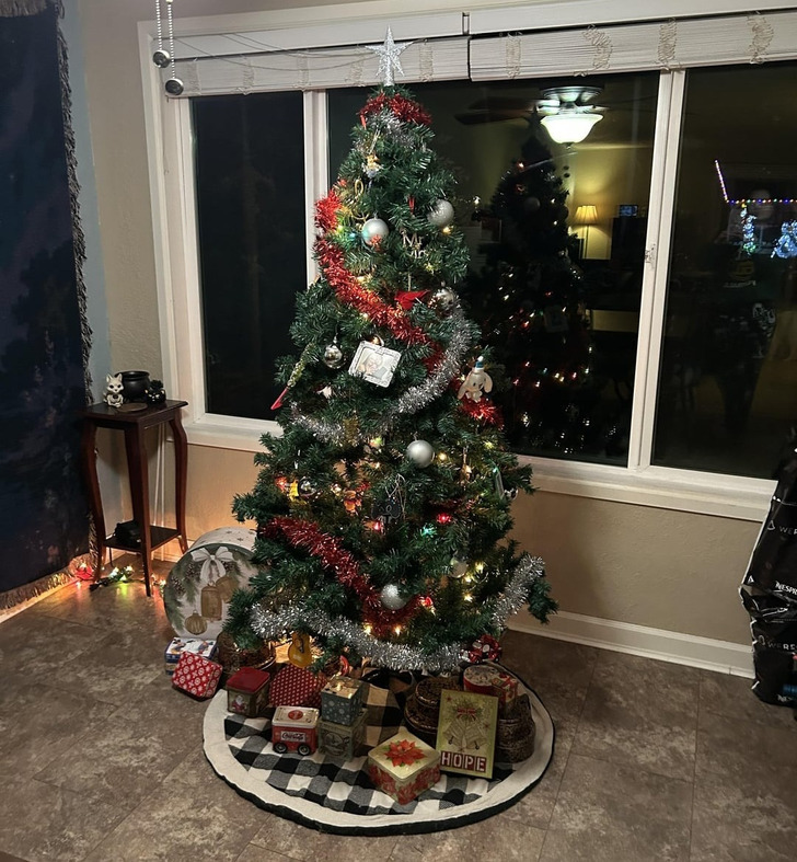 „Wracając do domu po 12-godzinnej zmianie, odkryłam, że mój mąż sam udekorował choinkę”.