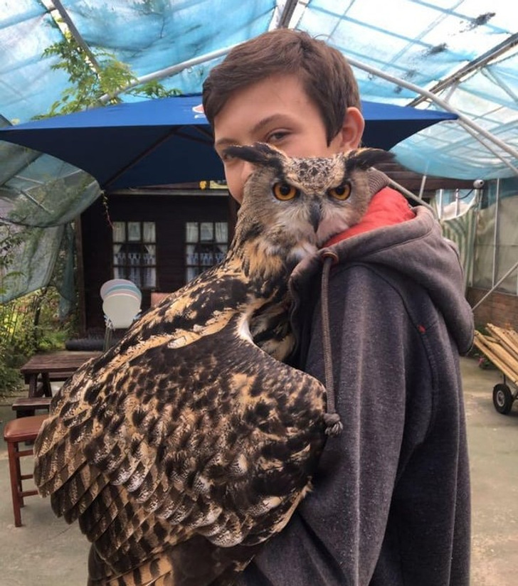 „Wyglądająca na bardzo rozgniewaną samica sowy po prostu mnie objęła”.