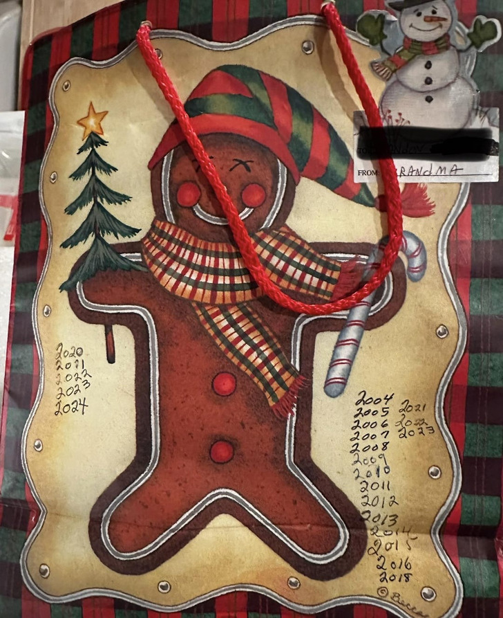 „Babcia już od 20 lat daje mi tę torbę prezentową na Boże Narodzenie”.