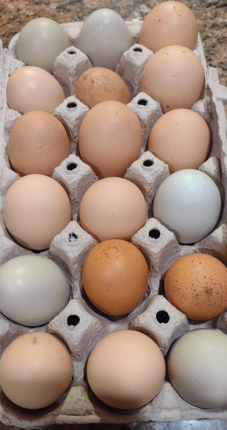 „Nasi sąsiedzi trzymają kury. Niedawno miło nas zaskoczyli, podarowując nam te jajka. Och, jak nam szczęście dopisało z sąsiadami!”