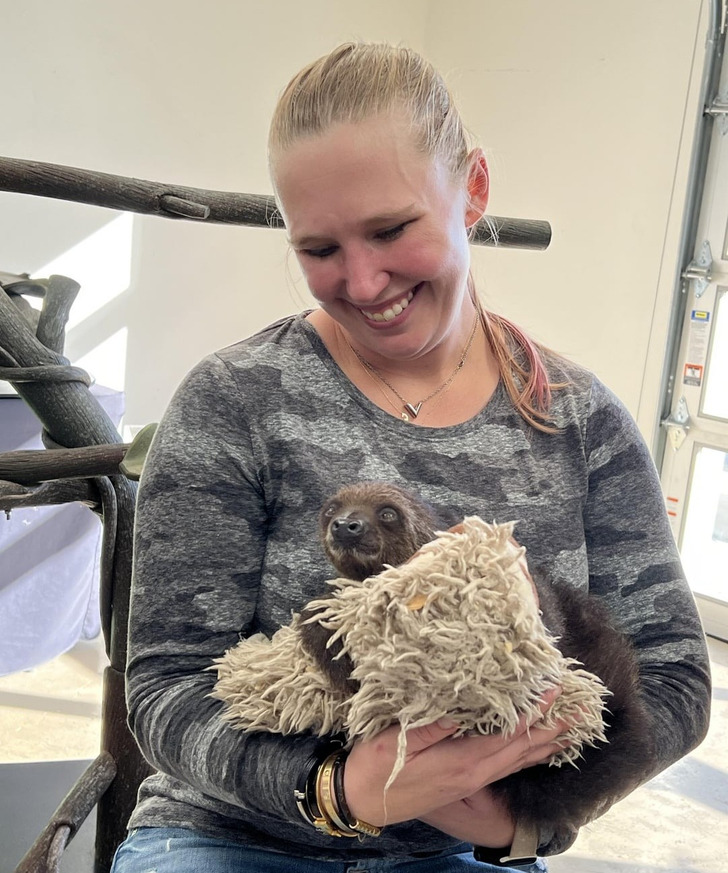„Nigdy nie myślałam, że spełnię swoje marzenie: potrzymać na rękach małego leniwca. Ale siostra zdołała się dogadać i sprawiła mi ten najlepszy prezent!”