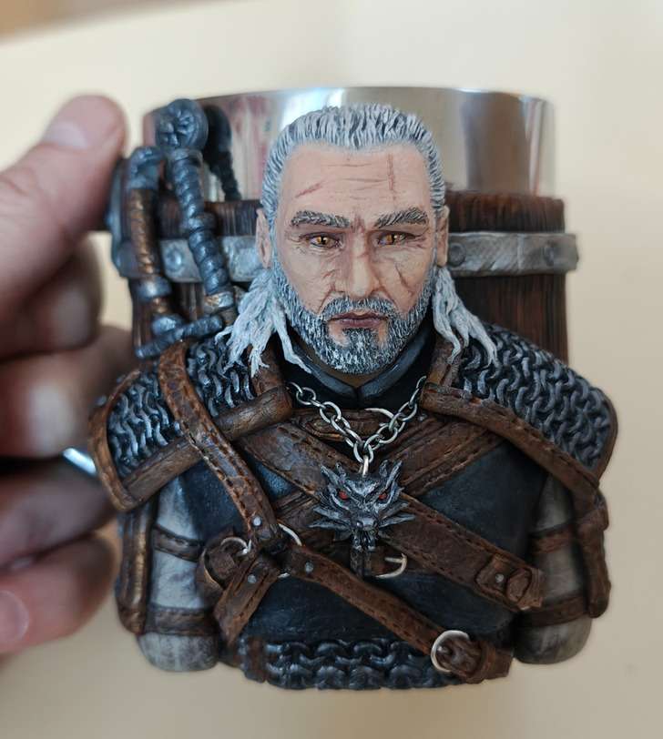 Córka stłukła mój kubek, więc poprosiłem żonę o kubek z motywem z gry „Wiedźmin” na moje urodziny. Myślałem, że dostanę standardowy z sklepu z pamiątkami. Żona postanowiła inaczej, a efekt na zdjęciu poniżej. © / Pikabu