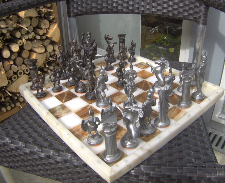 - Plansza została wykonana z marmuru, a figury szachowe z cyny. Ciekawostka: obie rzeczy były sprzedawane osobno przez dwie różne osoby. Miałem szczęście, bo normalnie kosztowałoby to znacznie więcej. © Ahoxgo / Imgur