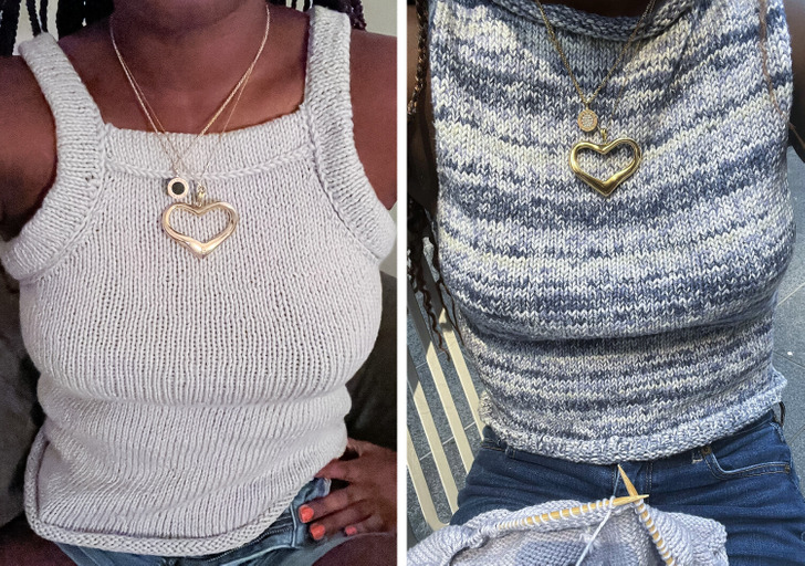 „W końcu skończyłam robić na drutach ten top. Zajęło mi to osiem miesięcy”.