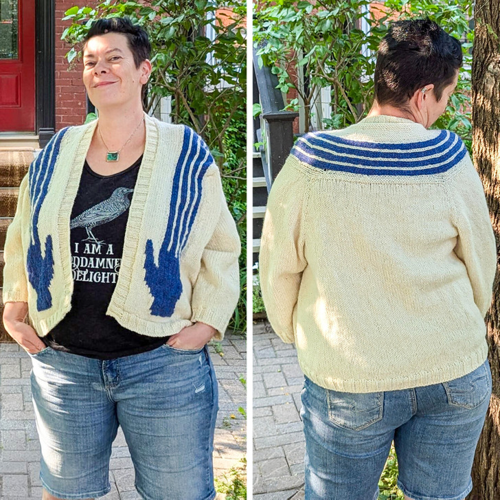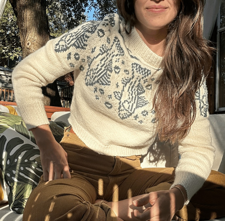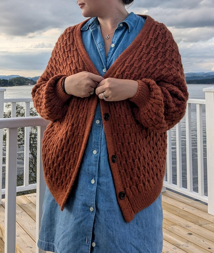 „Nie mogłam znaleźć normalnego kardiganu, który by mi się podobał, więc zrobiłam go sama na drutach”.
