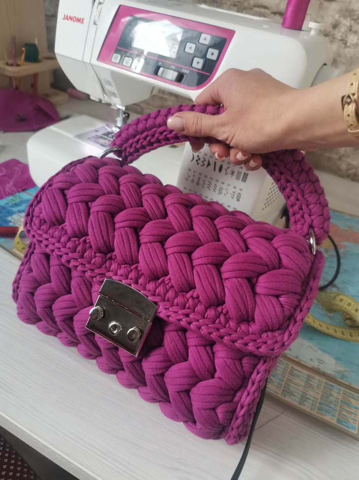 „Robię na drutach torby. Oto model «Pianka»”.