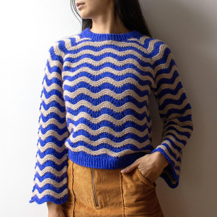 „Zajęło mi to około miesiąca. Szerokie rękawy z mankietami nie bardzo mi pasują, ale tutaj fale same w sobie tworzą piękne wykończenie”.