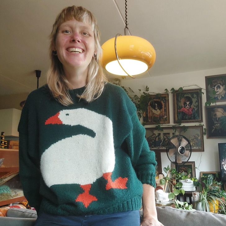 „Zrobiłam sweter z gęsią”.