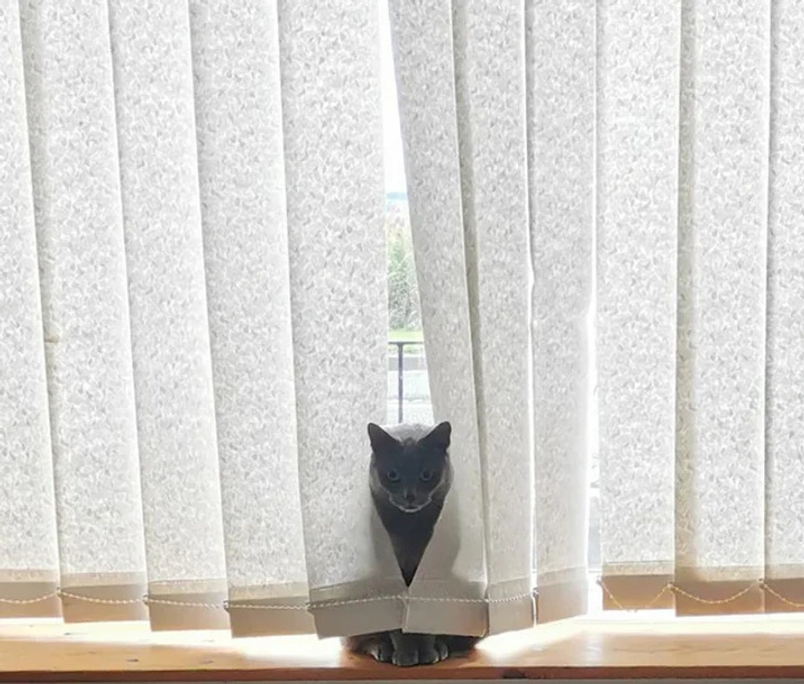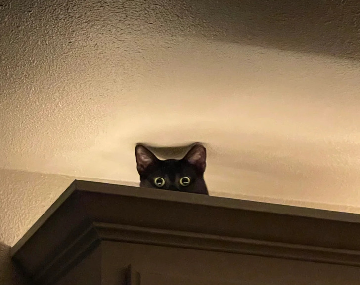 „Przez pół godziny nie mogłem znaleźć kota. Kiedy w końcu udało mi się go znaleźć, spojrzał na mnie tak, jakbym mu zepsuł napad stulecia”.